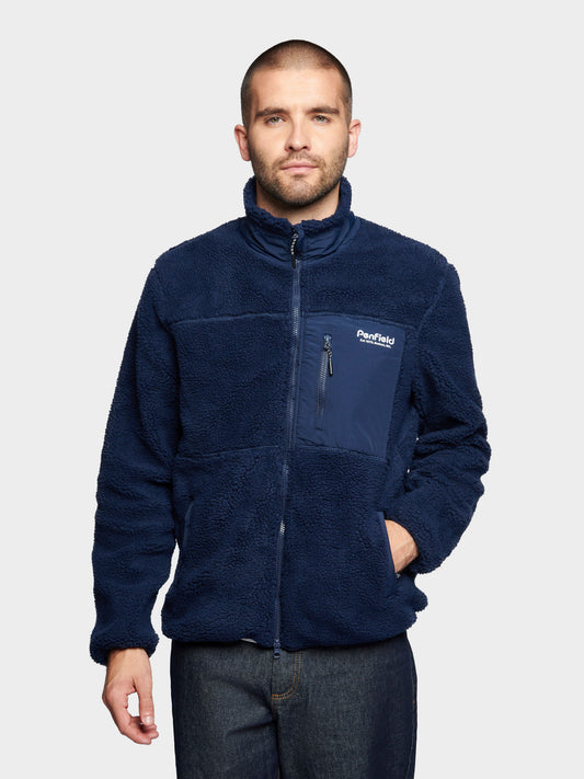 Hudson Script Fleece Jacket in Navy Blue