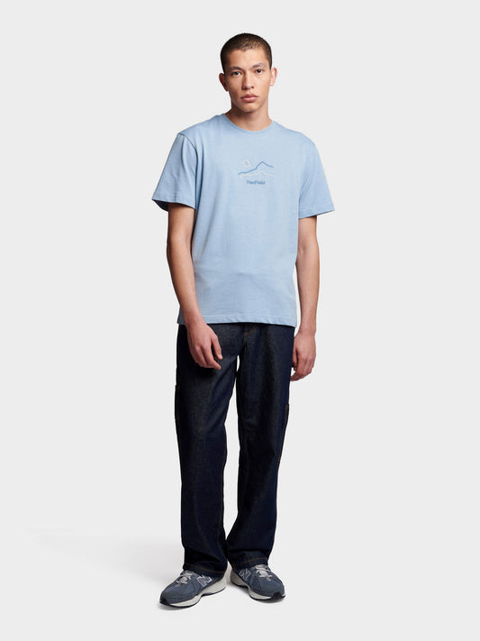 Relaxed Fit Embroidered Mountain T-Shirt in Soft Chambray